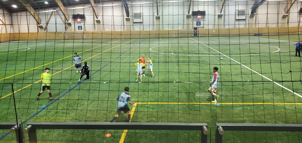 Aujourd’hui, lors de la 2ème journée de sélection au camp, une quarantaine de participants ont été divisés en trois groupes : Rouge, Bleu, et Vert. Pendant 1h15, différents modules de pratique ont été proposés, avec un accent particulier sur les techniques d’attaque et de soutien.Chaque groupe a été évalué sur sa capacité à construire une offensive collective tout en maintenant un soutien constant. Pour conclure la séance, des affrontements à 7 contre 7 ont été mis en place, permettant aux joueurs de mettre en pratique les compétences acquises en situation de match réel. Une séance intense et pleine d’enseignements !